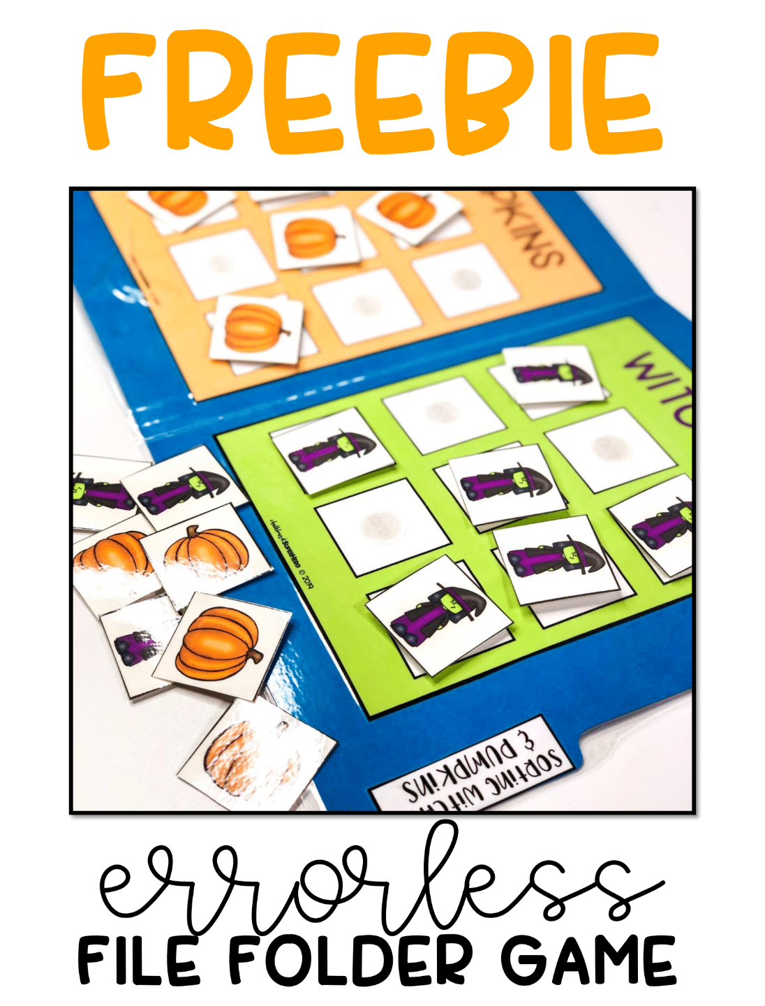 Grab these 2 FREE Halloween errorless file folder games to add to your ever-growing adaptive materials for your special education students. These are great, hands-on learning resources to use in your independent work stations, one on one instruction, or even to send home!