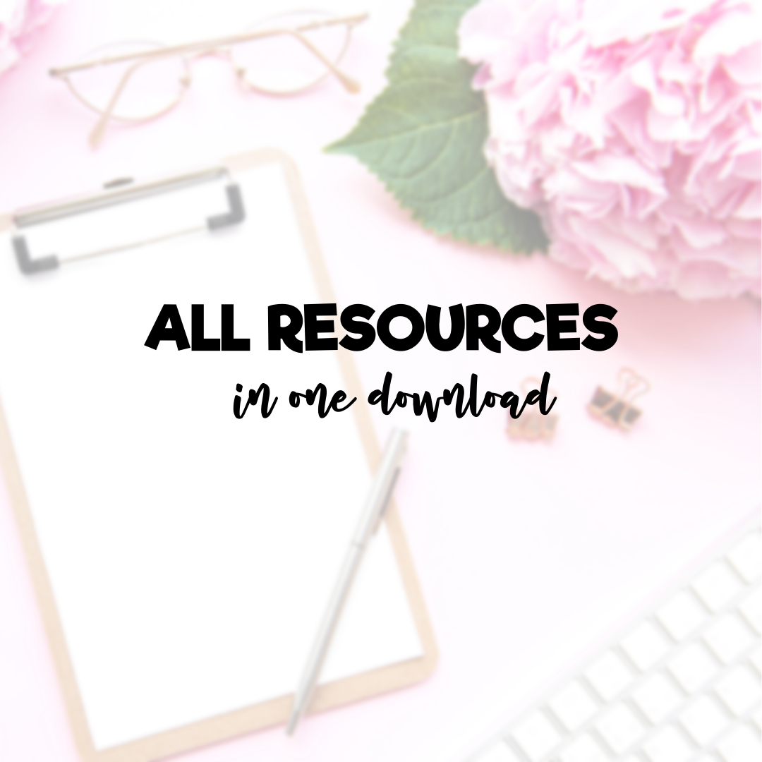 The resources below have been carefully curated. I currently use all of the resources that you see below. I truly believe that less is more and the key to success is to keep things simple and streamlined. If I mention a tool or resource in a training video, you will find it below. Also, in the first block, I have an all-in-one download, in case you would like them all at once. I encourage you to complete each lesson and module before using any of the downloads. If you have any questions about anything, you can ask in the Facebook group or email me at Lisa@chalkboardsuperhero.com
