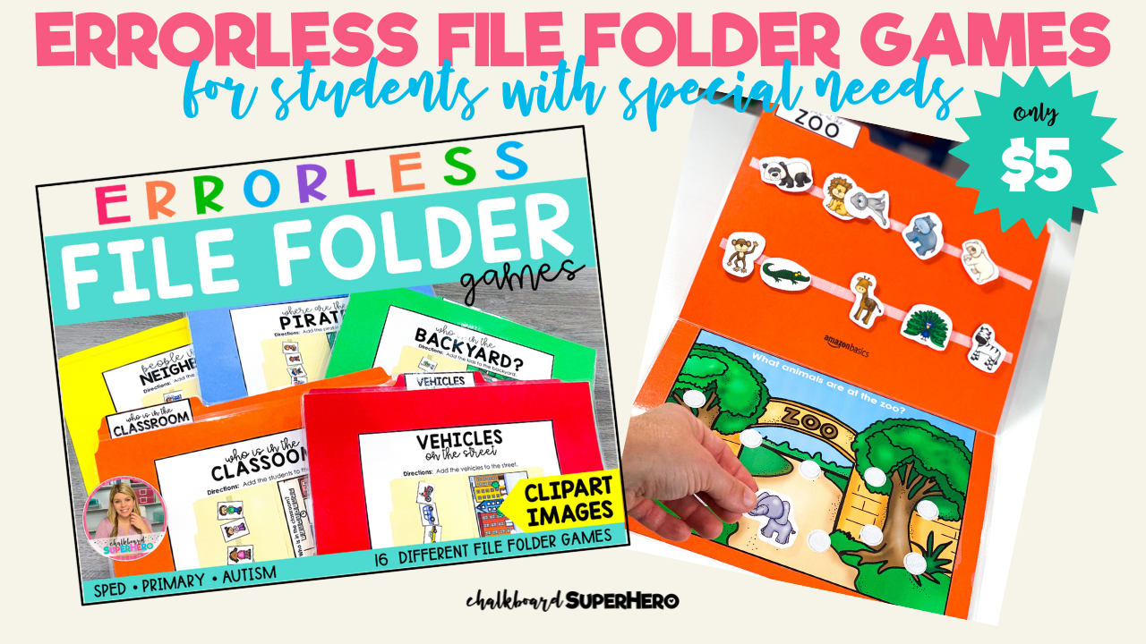 These file folder games help promote independent learning skills for early learners or students with special needs. These are targeted toward Pre-K or Kindergarten ability levels, although for my high school students, I still use them because they meet some of my student's needs.